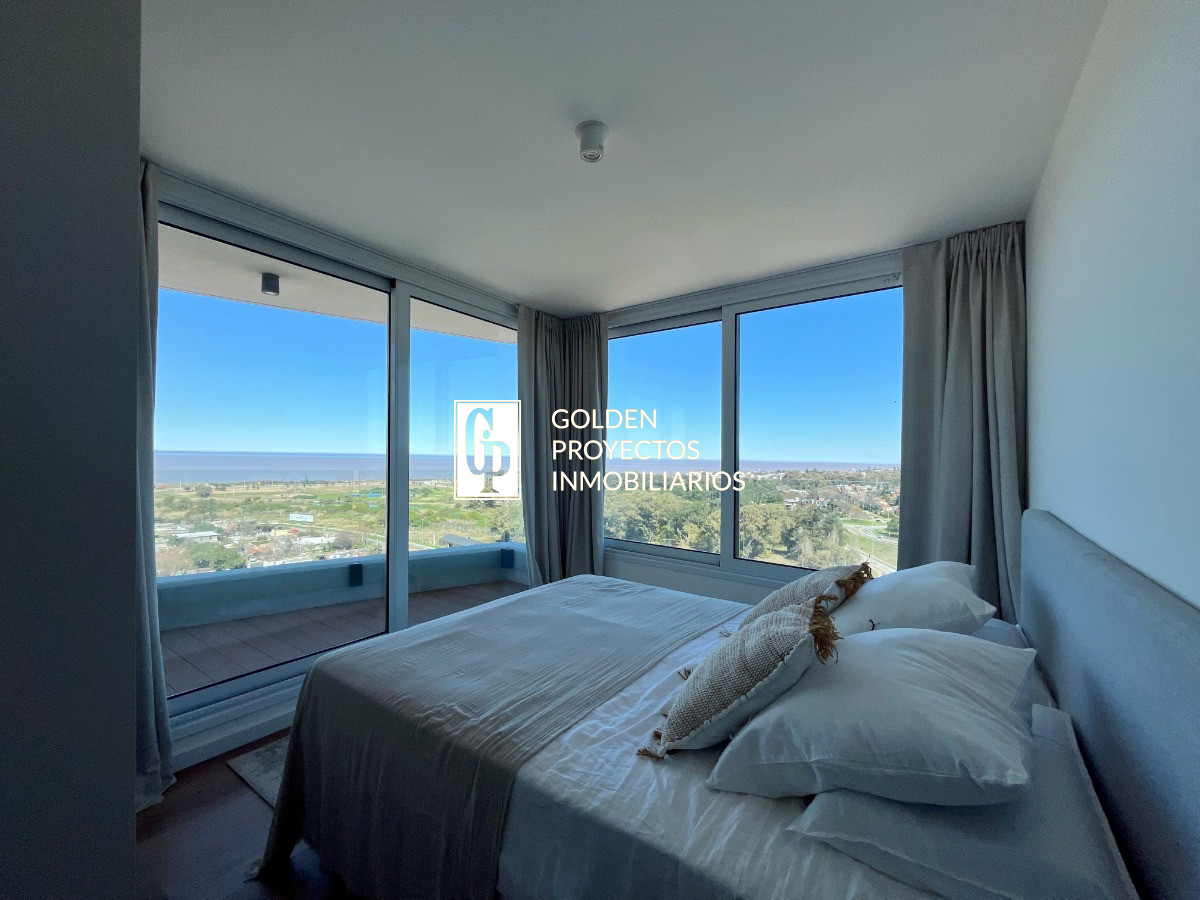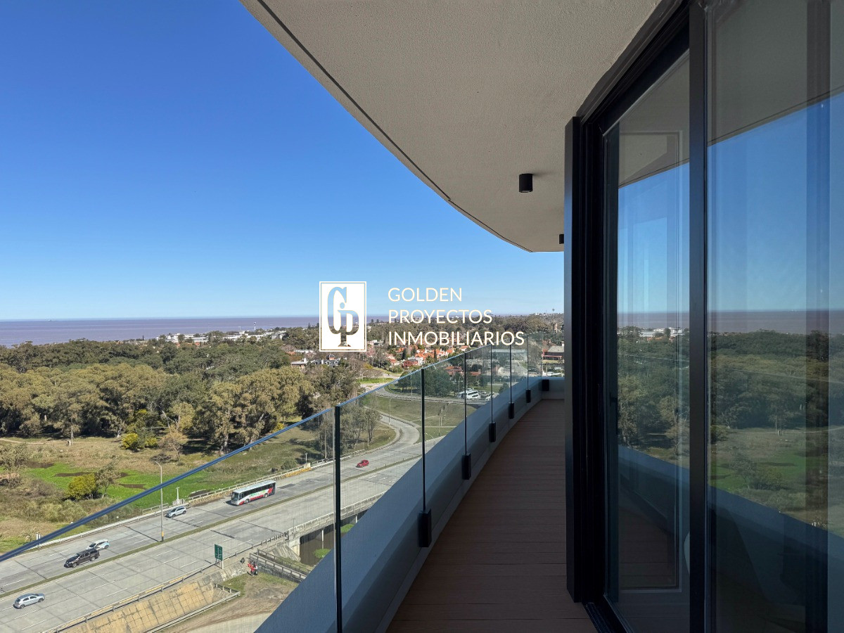 Piso 12, orientación sur con vista al mar desde living comedor y dormitorios, en Torre innovadora Ventura Tower Carrasco, sobre Av. de las Américas y Alma Fuerte, zona con alta demanda y excelente conectividad.